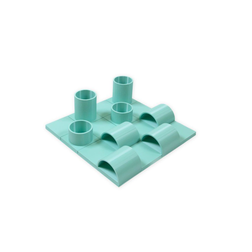 Průzkumník spojuje dva způsoby hledání v jednom setu. Pamlsky můžete ukrýt do válců i pod obloukové kryty a kočka si k nim musí najít svou vlastní cestu. Každý prvek funguje jinak, a právě to udrží pozornost kočičky déle.