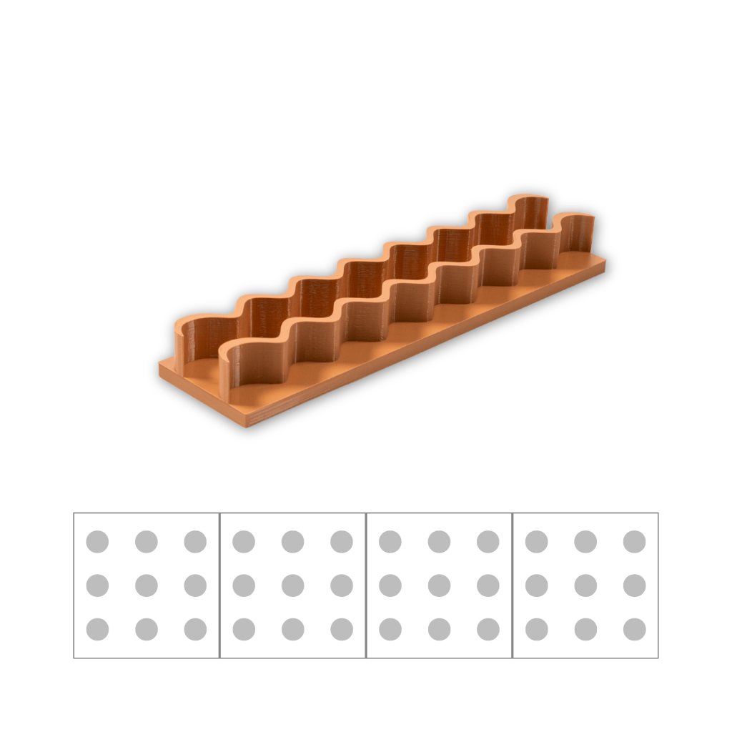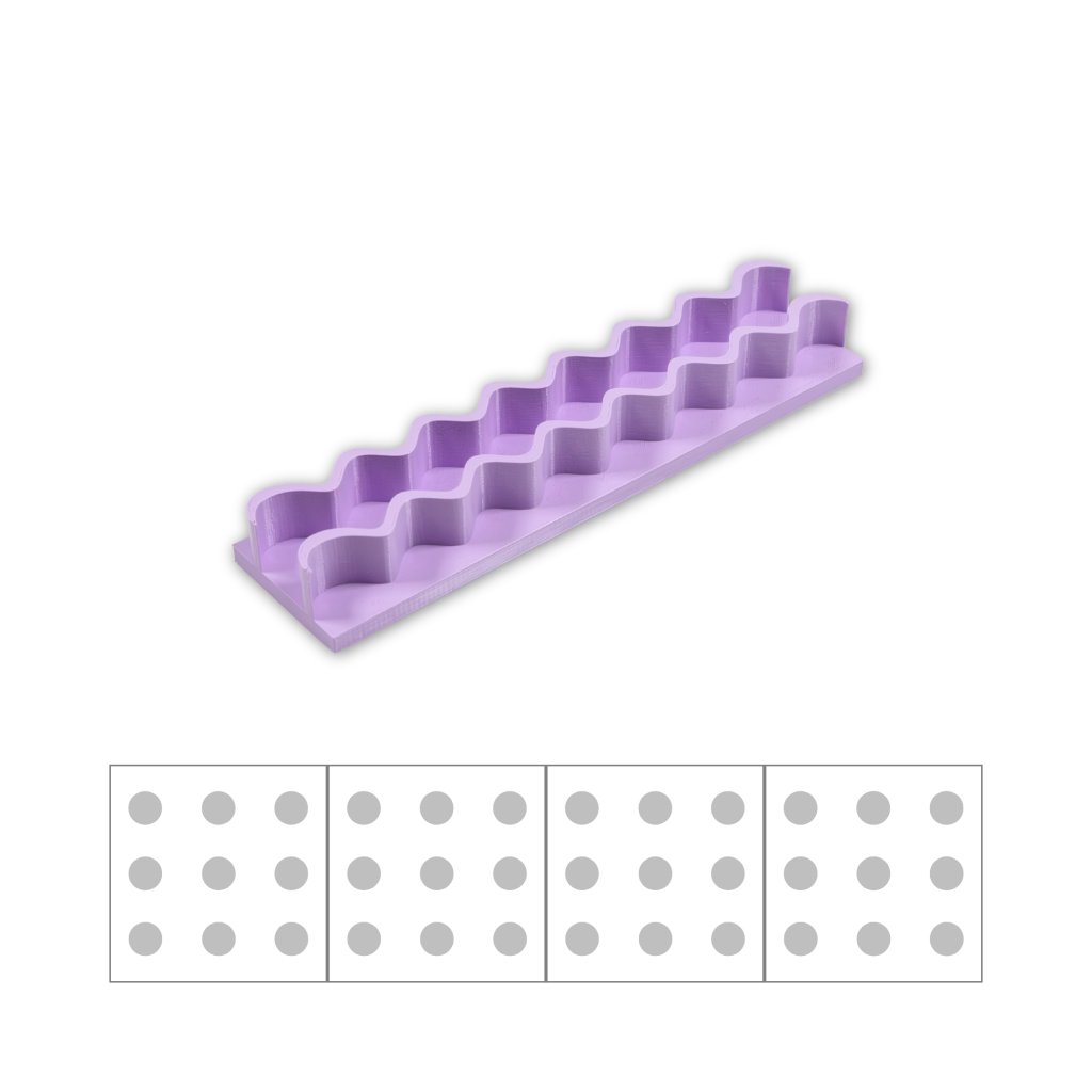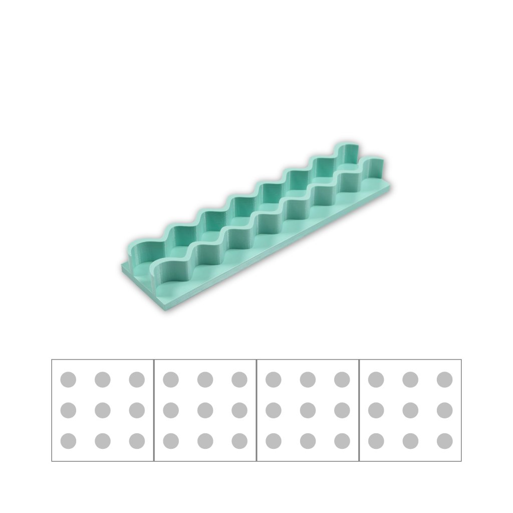 Každá komponenta je navržena podle modulární mřížky stavebnice. Malý diagram u fotografie znázorňuje, kolik základních polí daný díl zabírá v sestavě. Například základní podložka odpovídá ploše 4x4 základních jednotek. Díky tomu snadno uvidíte, kolik prvků se na ni vejde a jak ji lze kombinovat s dalšími komponentami.